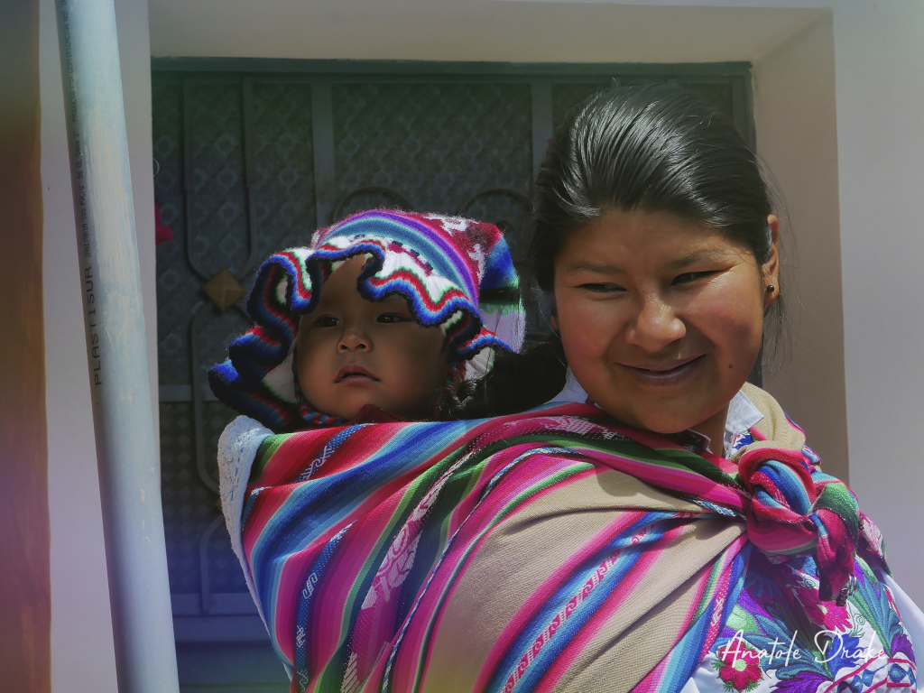 Jeune femme et son bébé sur l’ile de Taquilé. 2019